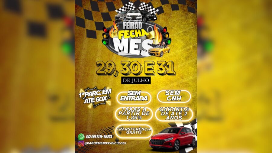 Se você está sonhando em trocar de carro ou sair de vez do transporte público, essa é a sua chance! A Pague Menos Veículos está realizando o Feirão Fecha Mês nos dias 29, 30 e 31 de julho, com condições especiais que vão facilitar — e muito — sua vida na hora de comprar um carro novo.